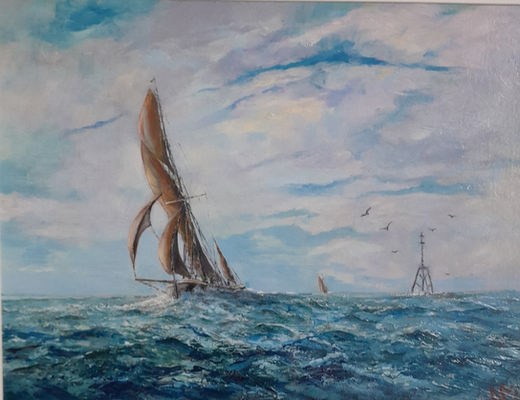 I mainly paint oil on board, generally marine subjects but this time I have tried to vary it with three portraits of cats much loved by my wife. I have recently been honoured to be made Chairman* of our Southend Art Club and will do my best for us all.